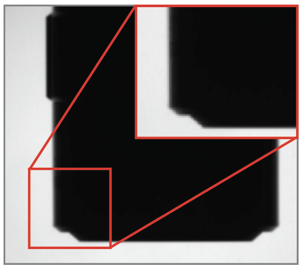 與傳統背光源(右)相比,遠心鏡頭配合遠心照明可產生邊緣對比鮮明的圖像(左)。