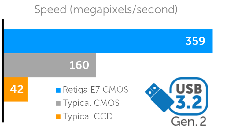 As well as the ‘Long Exposure’ mode, Retiga E cameras feature a ‘Fast Capture’ mode that operates at 100 fps for the Retiga E7, across the full 7 megapixel sensor. This flexibility allows the Retiga E7 to capture fast, dynamic signals, or to switch to long exposure in order to service a wide range of imaging applications.