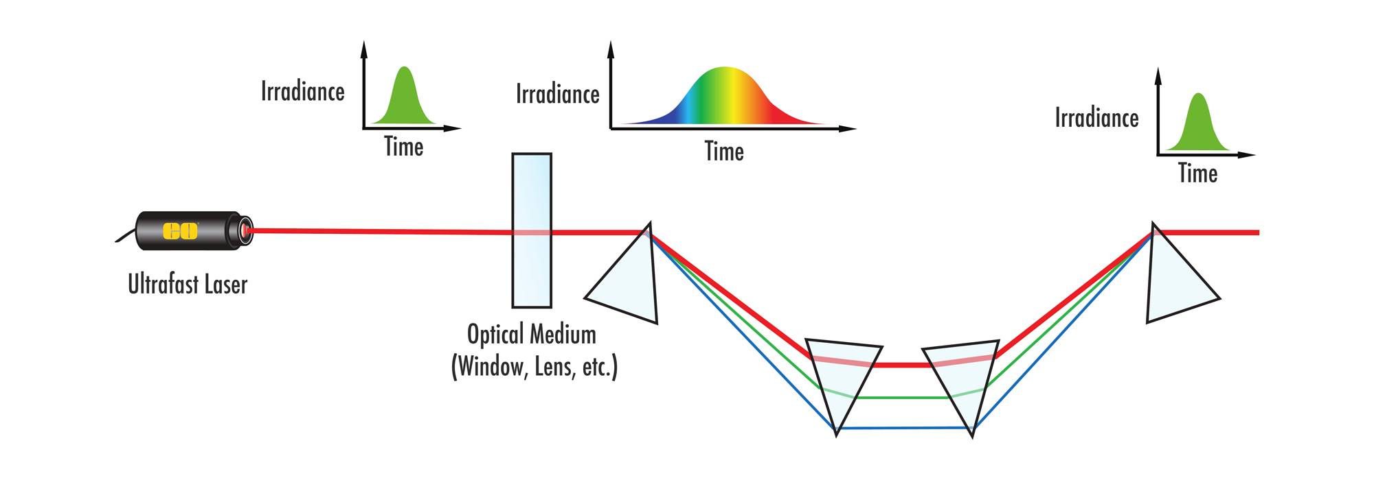 One of the most difficult technical challenges encountered when using ultrafast lasers is maintaining the ultrashort pulse durations initially emitted by the laser. Ultrafast pulses are highly susceptible to temporal distortion which elongates the pulses. This effect gets worse as the initial pulse duration gets shorter. While an ultrafast laser may emit pulses with a 50fs duration, relaying this pulse to a target position using mirrors and lenses, or even just transmitting the pulse through air, has the potential to broaden the pulse temporally.