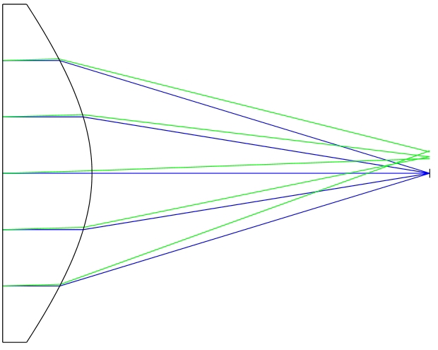 圖3:在最佳形態非球面透鏡中,所有的光功率都來自于面向焦斑的曲面,這在某些情況下導致了一些缺點(例如,與高級非球面透鏡相比,球面色差增大)。