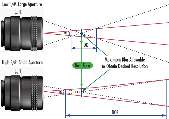 Figure 5: Geometric Representation of DOF for Low and High f/# Imaging Lenses