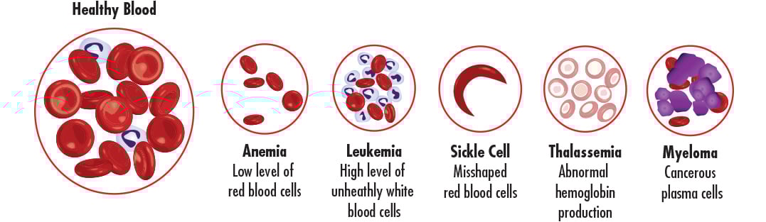 骨髓異常導致紅血球人體當中最常見的血球類型,是主要的氧氣輸送媒介。紅血球透過血液和心臟的跳動,在循環系統中運行。紅血球由骨骼內部的骨髓製造,主要成分是名為血紅素的蛋白質。數量增多的症狀,也可能造成白血球白血球對我們的免疫系統極為重要,可幫助人體對抗感染急性和細菌。大多數白血球由骨髓所產生,活動於血液和淋巴結中當中。白血球有核,和血液中的其他細胞和蛋白質相比,白血球通常體積較大且密度較高。體內的白血球總數通常攸關身體健康。和血小板血液的組成成分之一,主要功能為凝血並阻止受傷部位的血液流動。血小板的體積遠小於紅血球。和白血球不同的是,血小板沒有核,在血液樣本中非常容易辨別。增加。