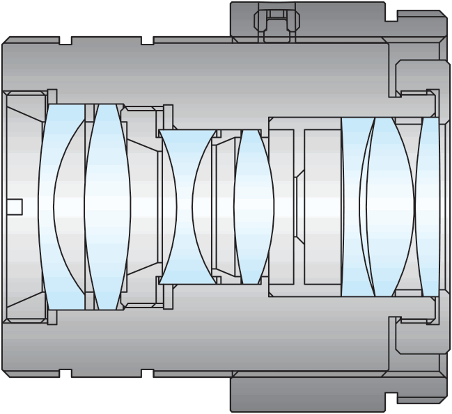 多數人談到透鏡,都會直覺想到傳統對稱的圓形透鏡,如此成見其來有自:透鏡製造過去多仰賴這種對稱特性,才能精準調整球面和非球面透鏡的形狀並拋光。在光學機械設計中,有了輻射對稱這個至關重要的角色,才能輕鬆找出複雜光學系統的中心並加以對準。若要觀察這類被動的對準程序,最好的對象就是顯微鏡物鏡或高階相機鏡頭中鏡筒內透鏡的排列方式。在這兩種物件中,透鏡和間隔環會在鏡筒內自動對準中心,大幅減少製造時間與成本,同時具備優異的機械穩定性 (圖 1)。